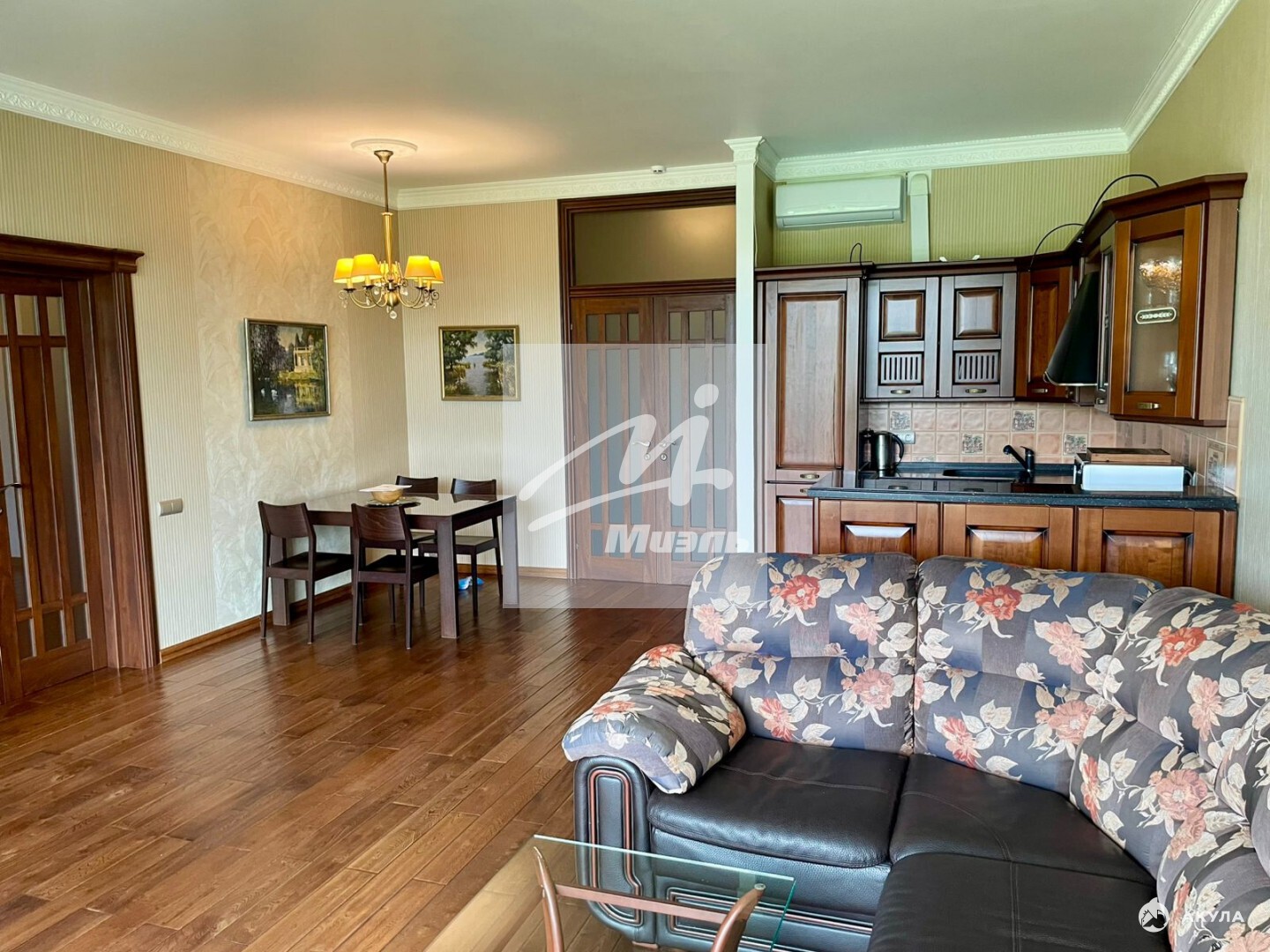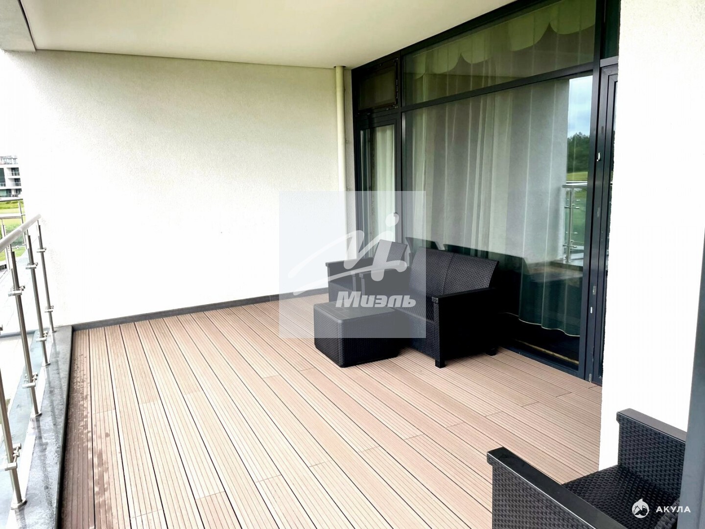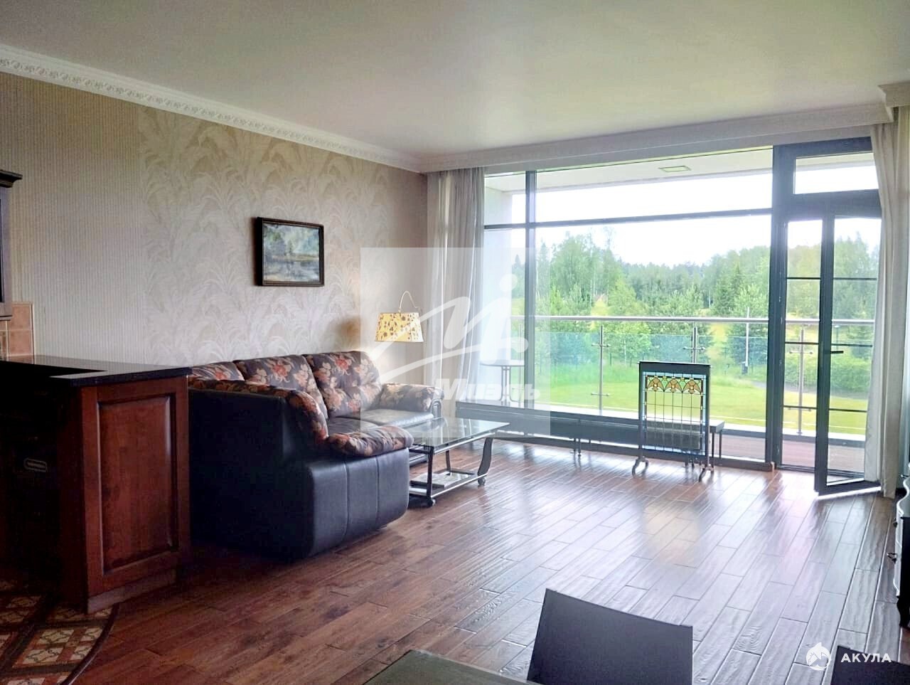 В квартире выполнен дизайнерский ремонт с использованием дорогих материалов. Квартира продается с мебелью и техникой Премиум класса. Функциональная планировка. Прихожая, кухня-гостиная, спальня, гардеробная, два санузла (один с ванной, другой — с душевой кабиной). Имеется дополнительная площадь в виде 25-ти метровой террасы, с видом на гольф-поле и пруд. В подземном паркинге имеется машиноместо (-1 этаж).