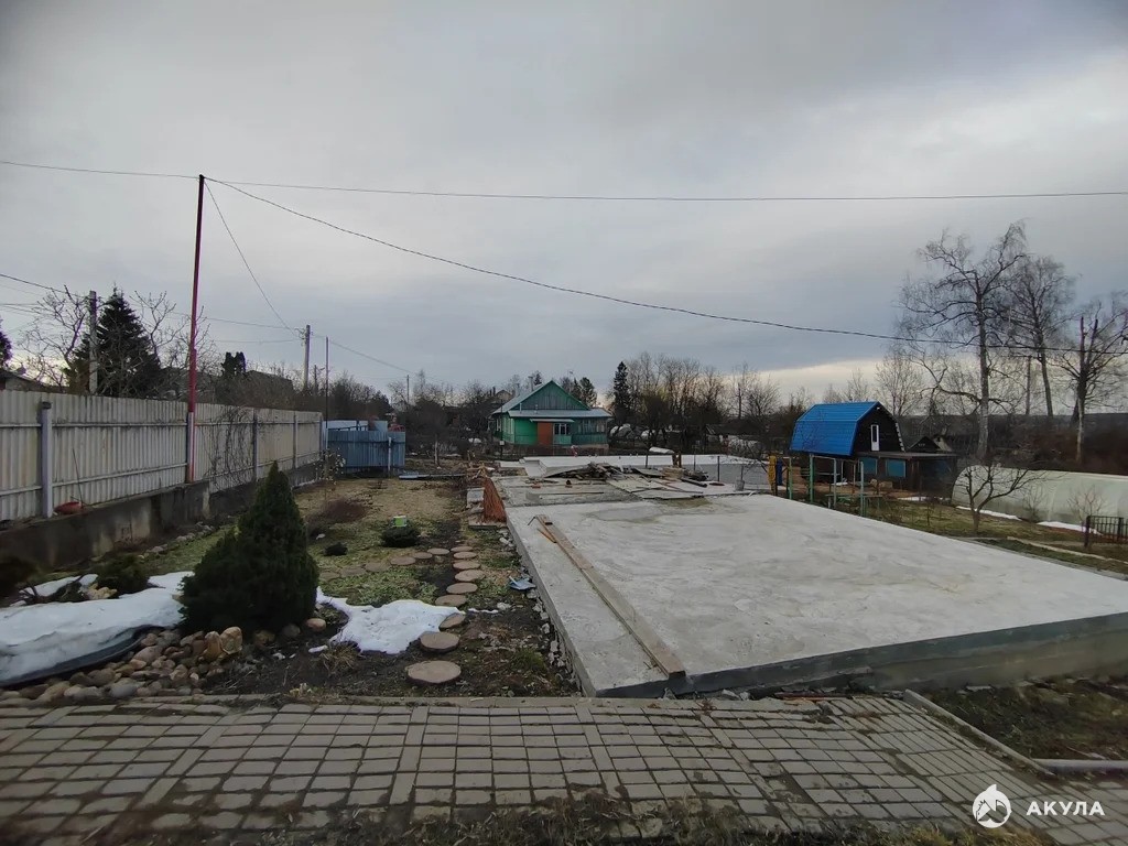 В самом центре развитого жилого посёлка, - ухоженный участок с садовыми деревьями. Есть новый монолитный фундамент (600 мм.) на 100 м2 (по полу) для возведения дома (200-300 м2), коммуникации: - электроэнергия: 15 кВт, вода - центральная поселковая, участок газифицирован.